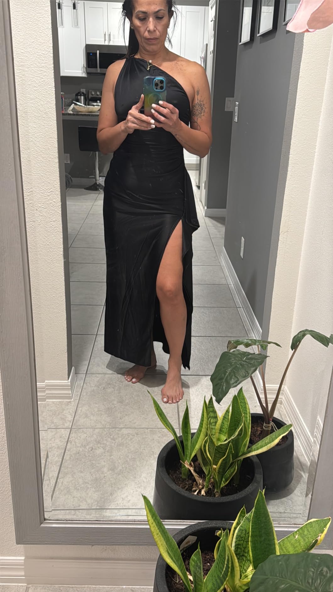 I needed a dress on short notice. It came the next day. I read the reviews and went with a small and baby I was so glad I did. I got so many compliments. I didn’t get a girdle so my smile at the bottom of my belly showed but that isn’t the dresses fault.
